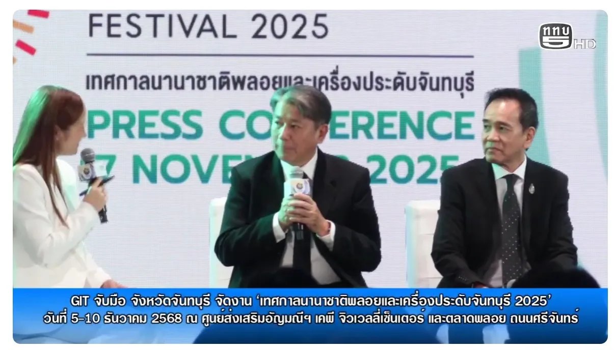 ใน เทศกาลนานาชาติ “พลอยและเครื่องประดับจันทบุรี 2025” ภายใต้แนวคิด “Chanthaburi: City of Gems” ที่รวบรวมผู้ผลิต ผู้ค้า และนักออกแบบอัญมณีจากทั่วโลก มาร่วมถ่ายทอดมนต์เสน่ห์แห่งอัญมณี พร้อมตอกย้ำความยิ่งใหญ่ของ “จันทบุรี” เมืองแห่งพลอย ศูนย์กลางการค้าอัญมณีของโลก ระหว่างวันที่ 5–10 ธันวาคม 2568 ณ จังหวัดจันทบุรี
