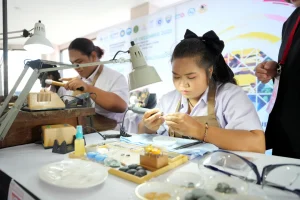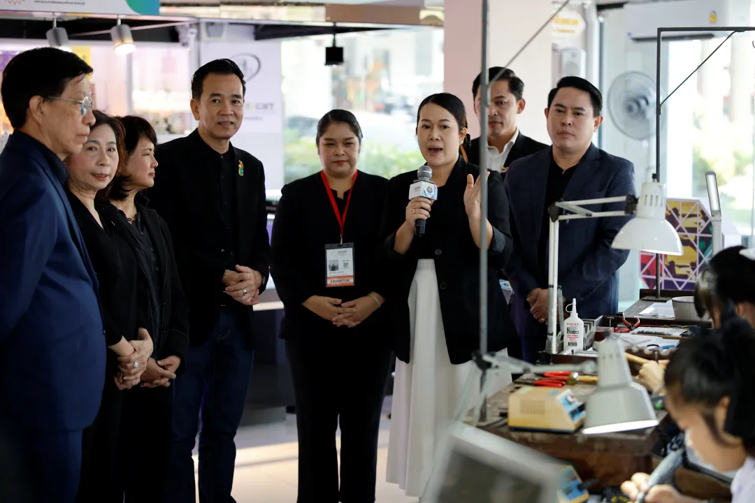 โดยมี นายสุเมธ ประสงค์พงษ์ชัย ผู้อำนวยการสถาบัน เป็นประธานกล่าวเปิดงาน เพื่อส่งเสริมศักยภาพช่างอัญมณีและเครื่องประดับรุ่นใหม่ โดยจังหวัดจันทบุรีถือเป็นแหล่งอัญมณีสำคัญของโลก โดดเด่นด้านงานฝีมือ การออกแบบ และความประณีตของช่างท้องถิ่น แต่ปัจจุบันอุตสาหกรรมอัญมณีไทยกำลังประสบปัญหา ขาดแคลนช่างฝีมือคุณภาพ โดยเฉพาะช่างเจียระไนและช่างฝีมือเชิงศิลป์ที่ต้องใช้ความละเอียดสูง จึงเป็นที่มาของการจัดกิจกรรมครั้งนี้ เพื่อสนับสนุนบุคลากรรุ่นใหม่เข้าสู่วงการ รองรับความต้องการของอุตสาหกรรมที่เติบโตอย่างต่อเนื่องทั้งในและต่างประเทศ กิจกรรมนี้จะมีบทบาทสำคัญในการผลักดันบุคลากรรุ่นใหม่สู่อุตสาหกรรมอัญมณีและเครื่องประดับของไทย รวมถึงช่วยเสริมการท่องเที่ยวเชิงวัฒนธรรมของจังหวัดจันทบุรีให้เติบโตอย่างยั่งยืน สอดคล้องกับวิสัยทัศน์สู่การเป็น “นครอัญมณีของโลก”